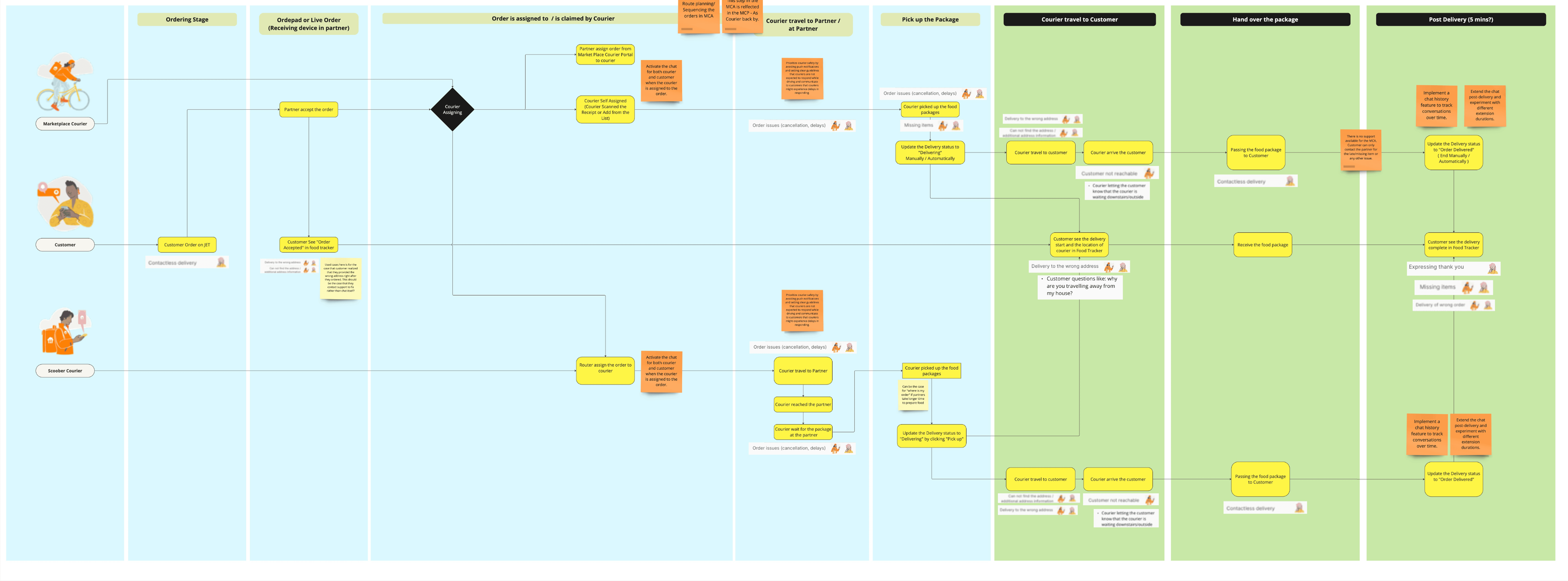 In parallel, we mapped order-related issues such as wrong orders, missing items, and post-COVID contactless delivery expectations. Customers often wanted food left at specific locations without direct interaction, while couriers needed confirmation and proof of delivery.