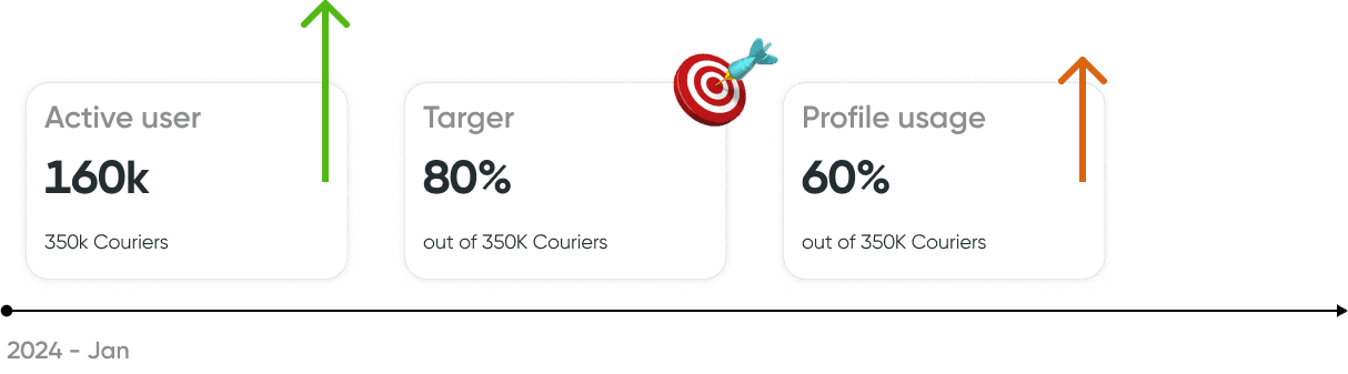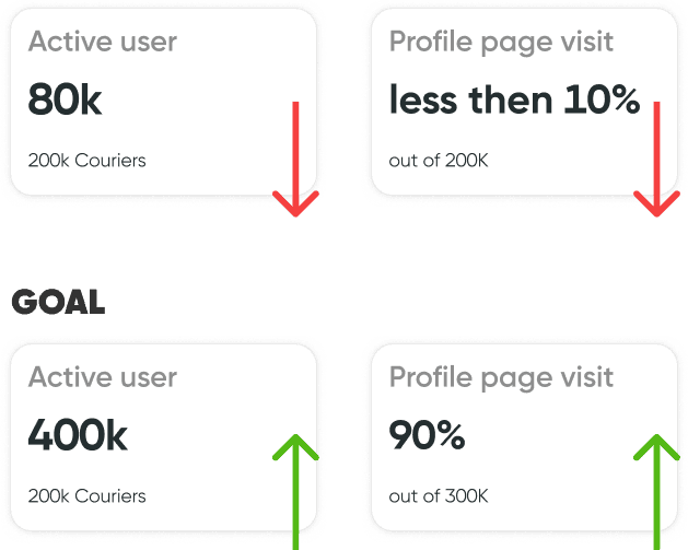 Courier engagement with the profile page is extremely low, at just 5%. I am leading a project to transform it from a basic information display into an insight-driven tool, aiming to increase engagement to 80% by providing couriers with actionable insights and personalized value.