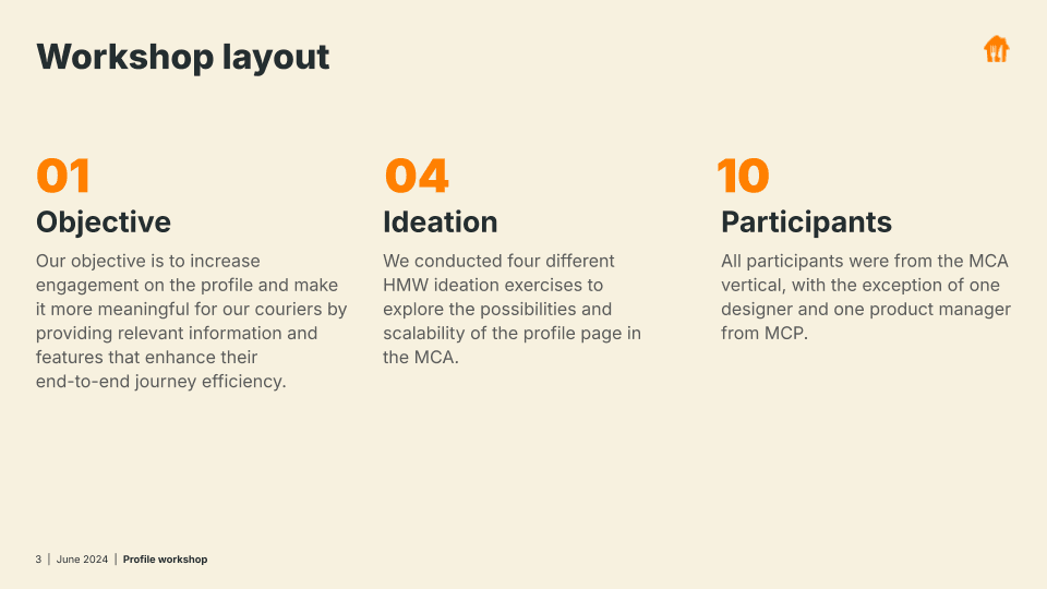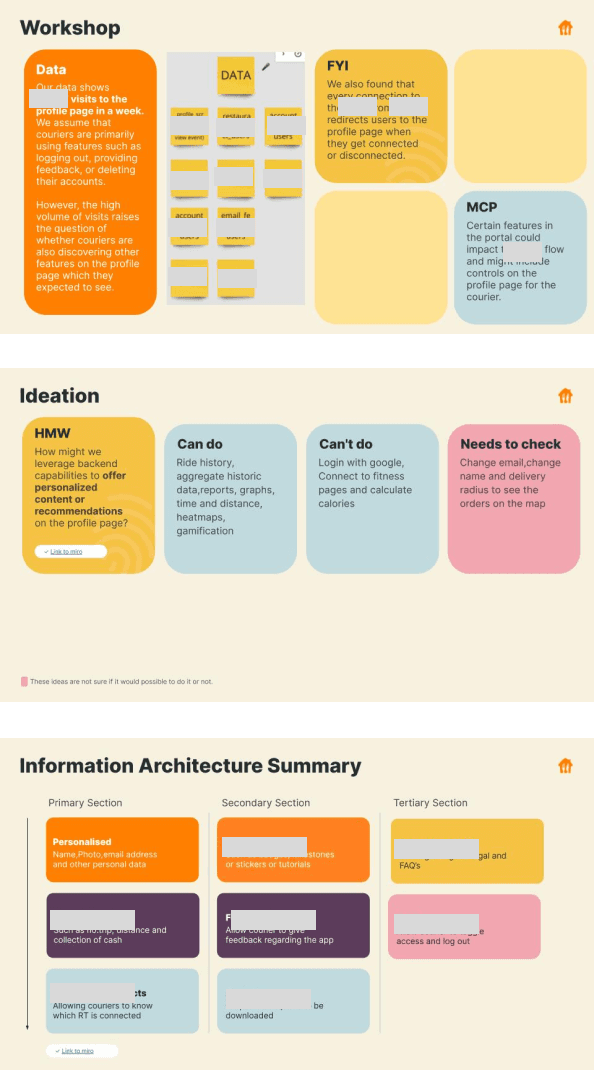 During the workshop, we conducted a "How Might We" (HMW) session with all internal and external stakeholders. The goal was to understand the vision for the profile page, including naming conventions, potential features, limitations, and scalability. This approach helped us gather valuable information and feedback, enabling us to design the profile page in a way that aligns with both user needs and future growth.