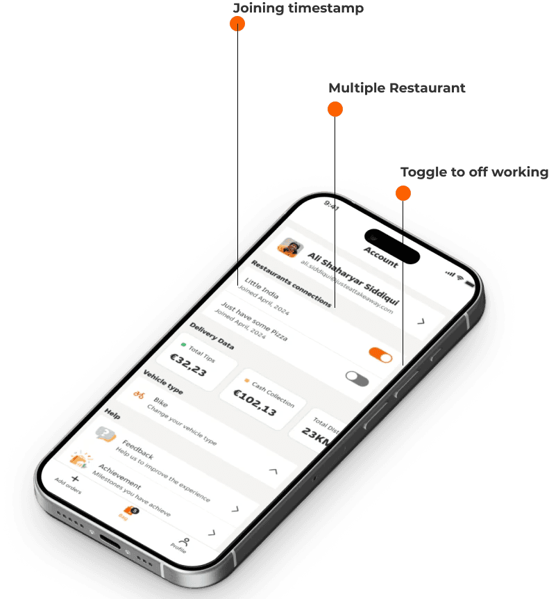 The restaurant connection feature lets users customize their opening and closing times, giving them control over availability. It offers real-time updates on whether the restaurant is online or offline, helping owners manage their status and reduce downtime, leading to better order management and customer satisfaction.