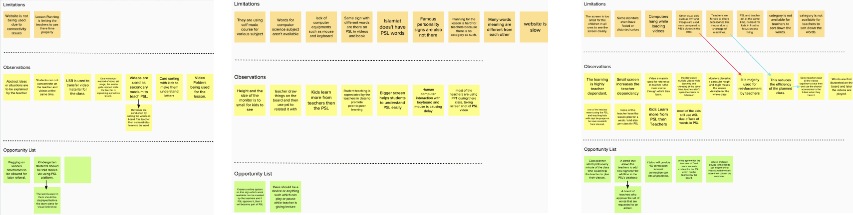 We visited several schools in Karachi, Hyderabad and Nawabshah to observe challenges that the students and teachers faced in teaching the Pakistan Sign Language. It was essential for us to identify and understand the role digital played in teaching the language. Users pain-points, included access to signs of words, searching for existing words and curating content for delivering classes.